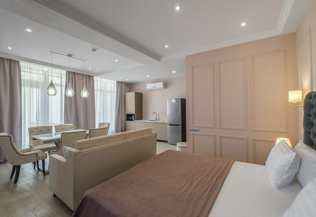 Отель «Династия»*** находится в живописном поселке Орджоникидзе, в городском округе Феодосии. Поселок Орджоникидзе расположен на мысе Киик-Атлама, очень далеко уходящем в Черное море и разделяющем бухты Двуякорную на востоке и Коктебельскую на западе. Непосредственно у Орджоникидзе часть Коктебельской бухты, отгороженная мысом, носит название бухты Провато.