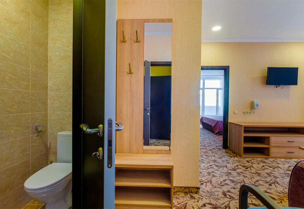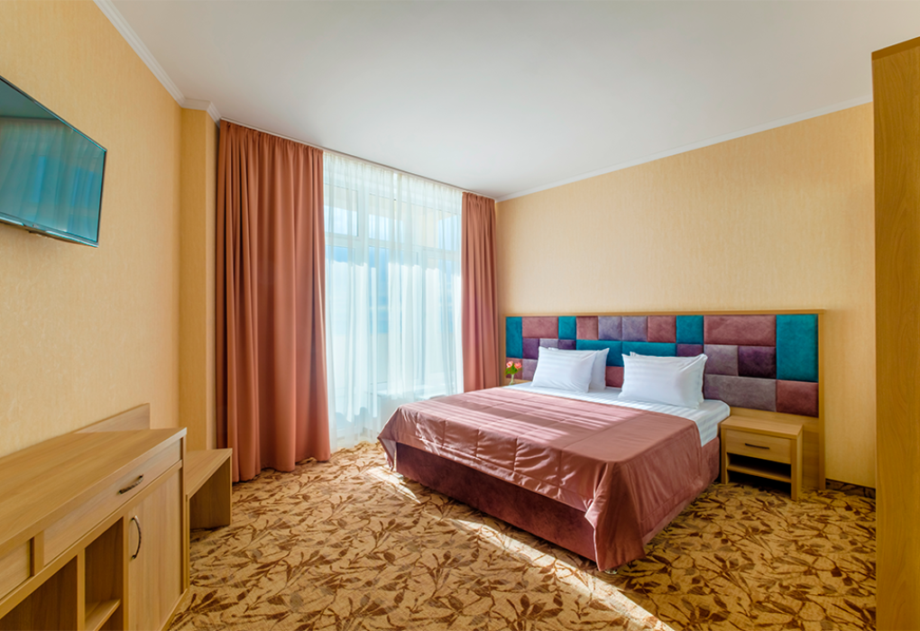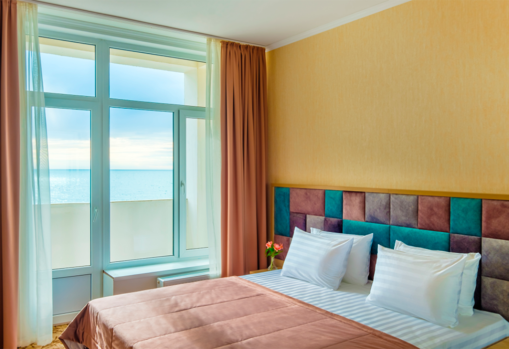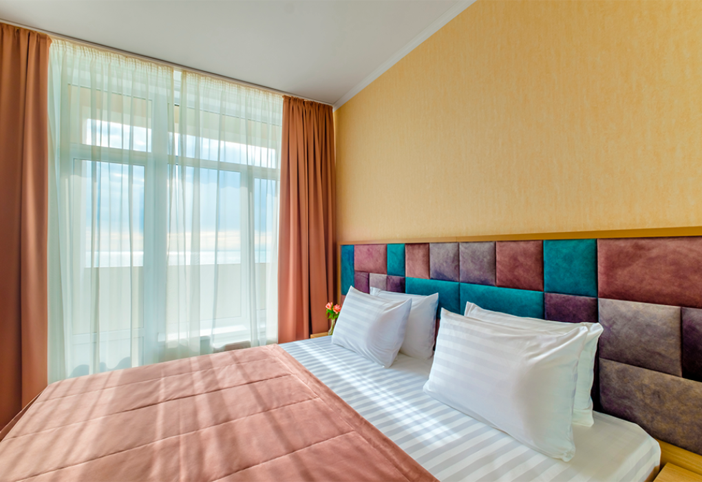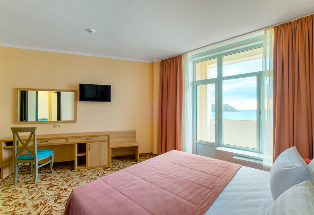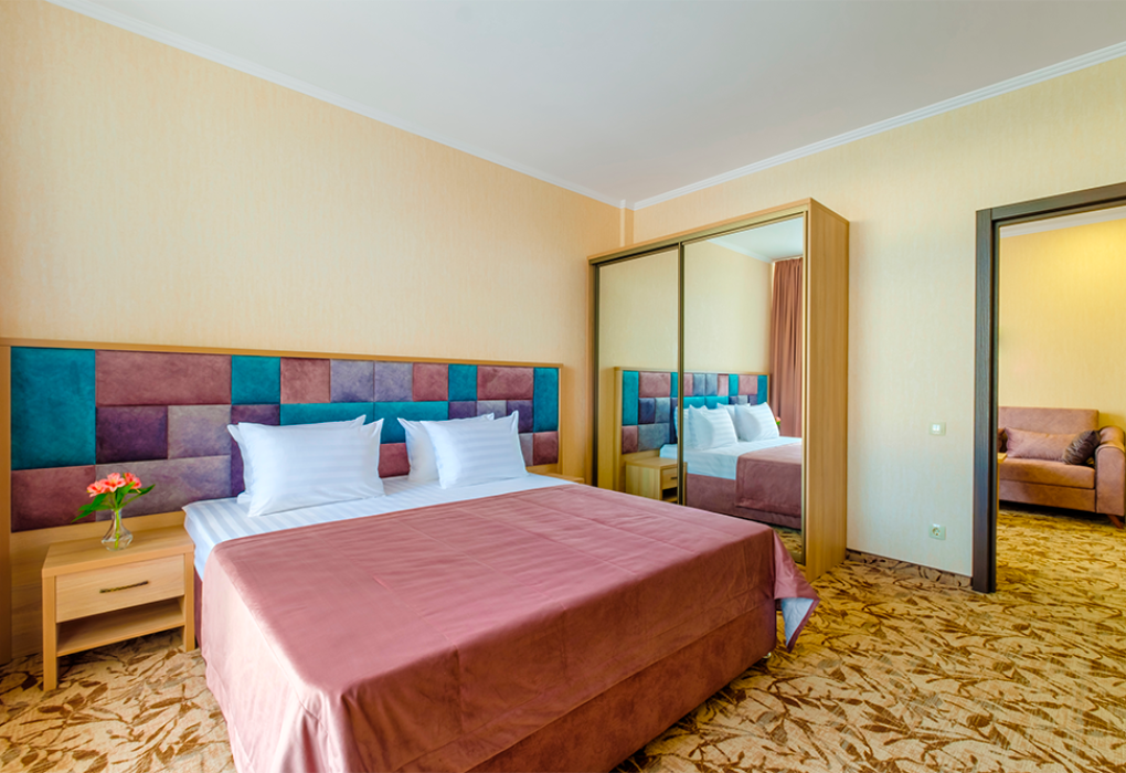 Площадь номера - 40 кв.м. 2 комнаты. 2 осн. места. из каждой комнаты есть свой выход на балкон: из одной комнаты боковой вид на море, из второй - прямой вид. В номере: телевизор; холодильник; балкон; кондиционер; телефон; фен; туалетные принадлежности; мебель на балконе; стул; 1-спальные кровати; прикроватные тумбочки; зеркало; вешалка для одежды; душевая кабина; шкаф; багажница; санузел; мини-сейф; электрический полотенцесушитель. 2 доп. места: Диван + еврораскладушка - могут быть предоставлены без ограничения по возрасту.