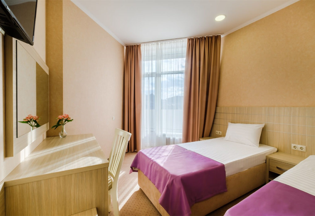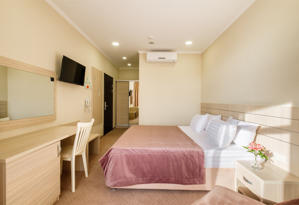 Площадь номера - 40 кв.м. 2 комнаты. 4 осн. места. боковой вид на море. В номере: телевизор; холодильник; балкон; кондиционер; телефон; фен; туалетные принадлежности; мебель на балконе; стул; 1-спальные кровати; прикроватные тумбочки; зеркало; вешалка для одежды; душевая кабина; шкаф; багажница; санузел; мини-сейф; электрический полотенцесушитель. 1 доп. место: Кресло-кровать - может быть предоставлено без ограничения по возрасту.
